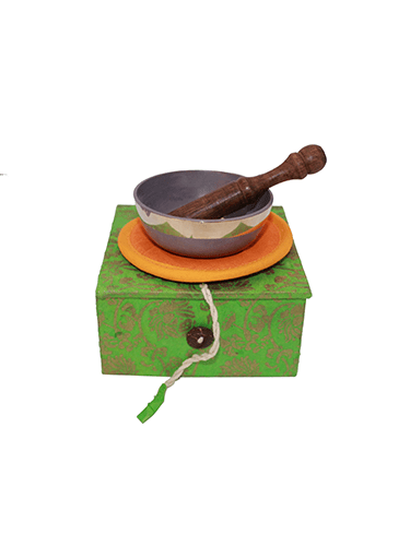 Cuenco Tibetano con Caja y Cojin. El color de la caja y cojín pueden variar.