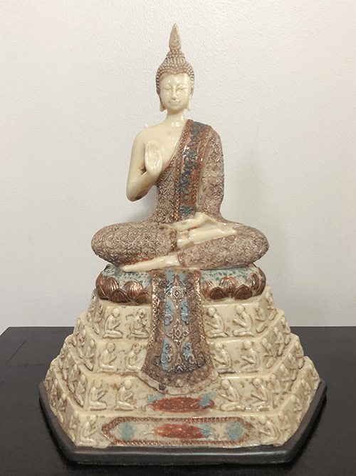 Siddharta marfil con dorado sentado sobre piramide